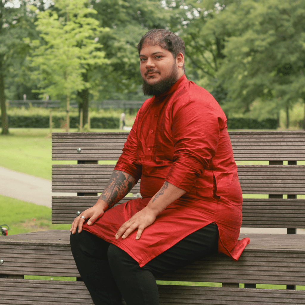‘Hoewel ik christelijk ben opgevoed, ben ik na mijn coming-out heel erg op zoek gegaan naar mijn Hindostaanse identiteit. Het vieren van Hindoeïstische feestdagen zoals Diwali en Holi is nu belangrijk voor me. Ook ben ik meer in de spirituele kant van mijn Hindostaanse achtergrond gedoken, vooral in het eren van mijn voorouders. Dit helpt me om een diepere verbinding met mijn afkomst te voelen’.