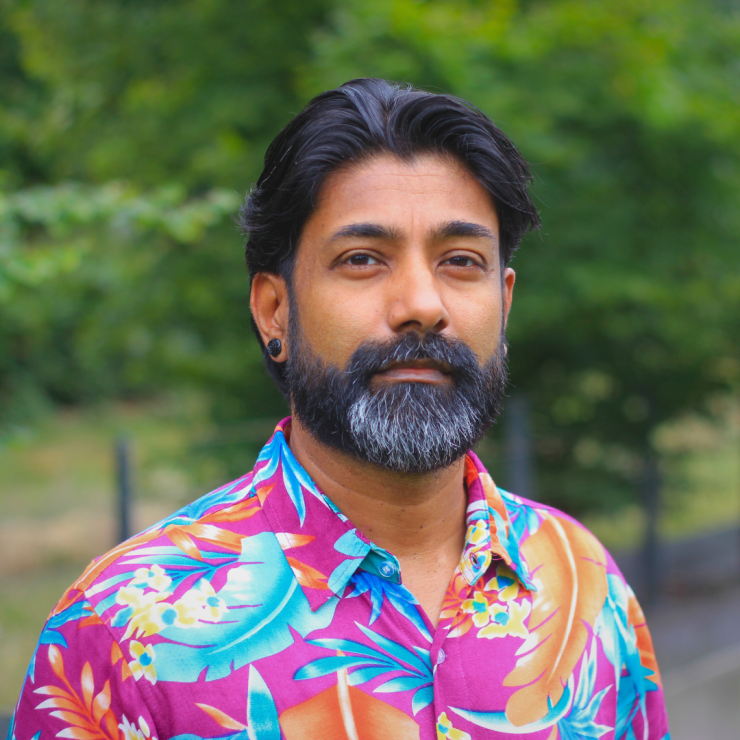 Patrick Somai (hij/hem) is docent. Als fashionista houdt hij van de pracht en praal van de diverse kleding op o.a. shaadi’s (hindoebruiloft, ook bekend als biya, vivaah). Hij doet zijn eigen onderzoek naar traditionele Hindostaanse kleding, dat geeft hem joy. Patrick heeft een unisex kledingstuk ontwikkeld, gebaseerd op het wikkelen van de sari met elementen van de dhoti.