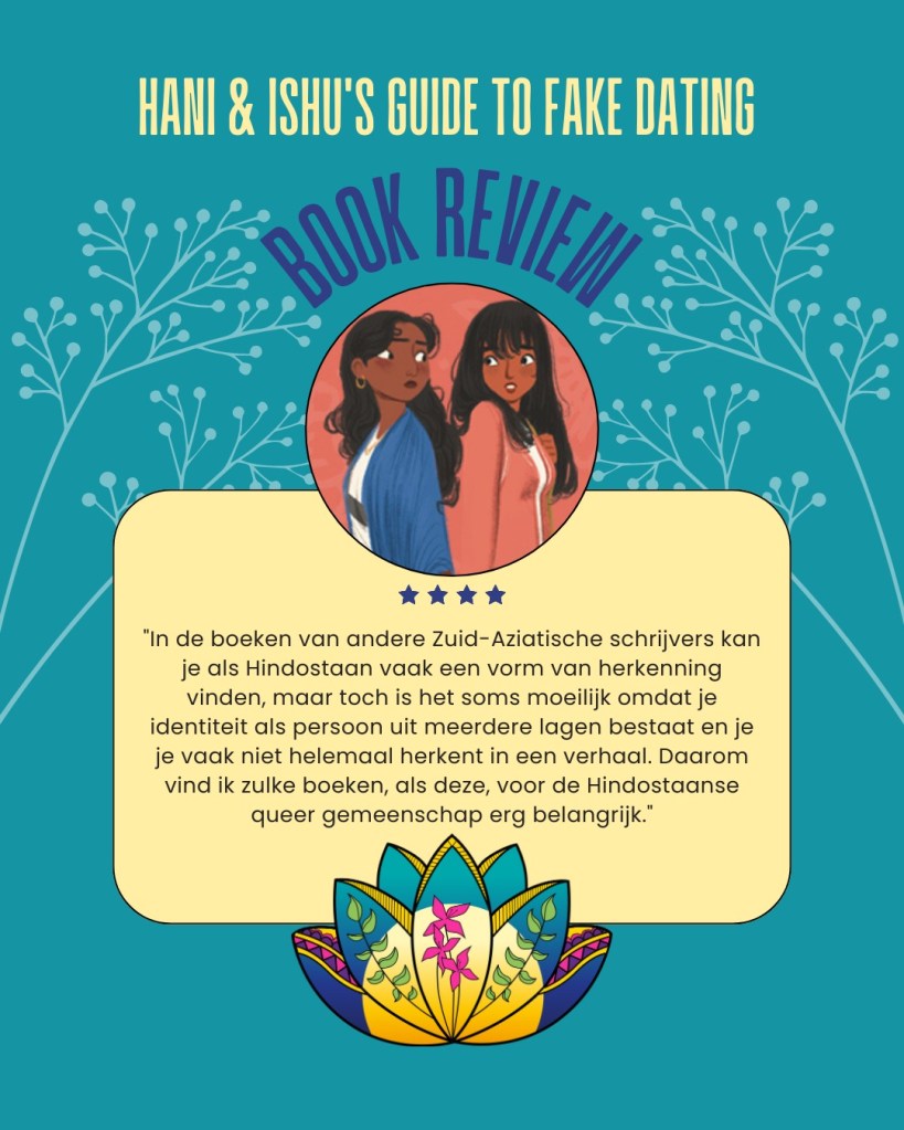 Een review van het boek ‘Hani and Ishu’s guide to fake dating’. Een verhaal over de ontwikkeling van een ingewikkelde liefde tussen twee meiden. Als Hani haar vrienden vertelt dat ze biseksueel is, geloven ze haar niet. Uit paniek verzint Hani dat ze een relatie heeft met Ishu, een meisje waar de vrienden van Hani een hekel aan hebben.