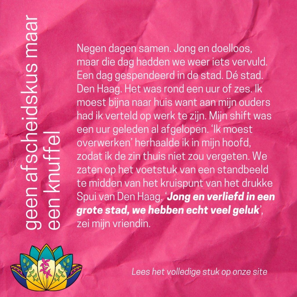 ‘Ik kwam er als puber achter kwam dat ik zowel meisjes als jongens interessant vond. Wat mij betreft was er niet zoveel aan de hand, de ontdekking voelde voor mij als doodnormaal. De echte shock zat in de reactie van mijn omgeving. Zij hadden het er vele malen moeilijker mee dan ikzelf. Ik was me niet echt bewust van de impact van mijn queer zijn – als Hindostaans meisje – op mijn naasten’.