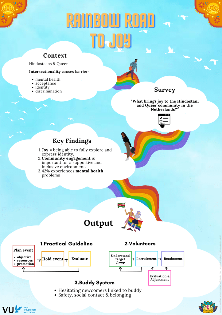 Het project is gericht op een beter begrip van wat vreugde brengt binnen de Hindostaanse queer gemeenschap, en welke barrières er zijn die deze vreugde belemmeren.